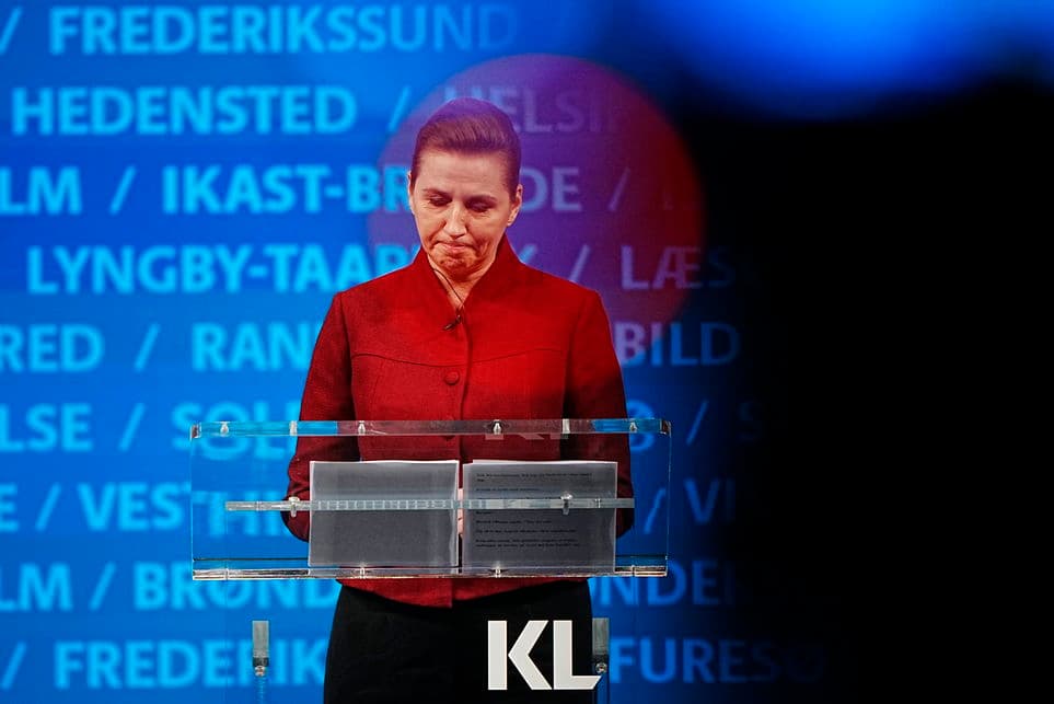 Statsminister Mette Frederiksen (S) tegnede et dystert billede af fremtidens velfærdssamfund på talerstolen til KL's kommunalpolitiske topmøde torsdag. | Foto: Bo Amstrup/Ritzau Scanpix