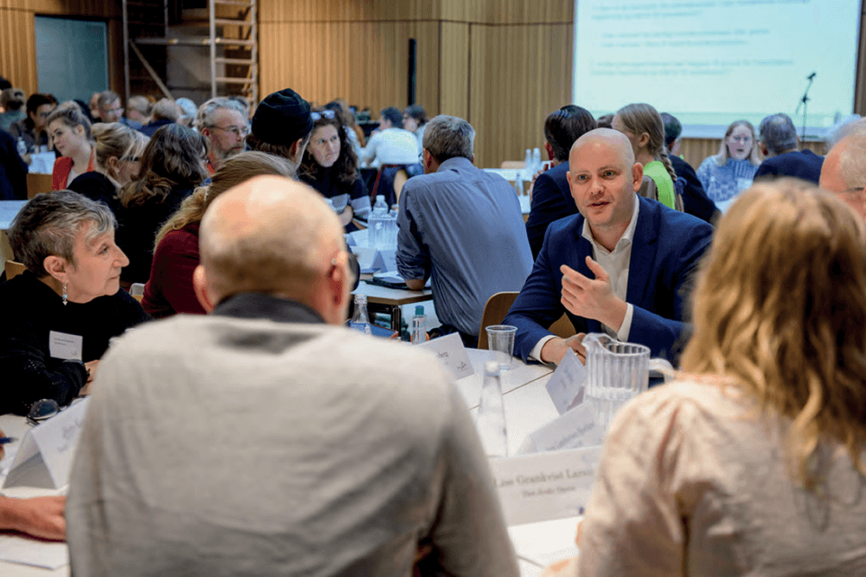 ÅRSDAG: Dansk Erhvervs administrerende direktør, Brian Mikkelsen, ville diskutere landets produktivitetskrise, men sparkede en åben dør ind. Anderledes energisk blev det, da snakken faldt på tilbagetrækning til efterårets første partilederdebat.