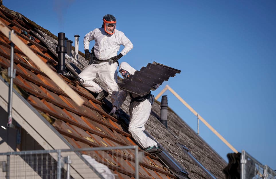 Arkivbillede af et asbestholdigt tag, der bliver revet ned. | Foto: Liselotte Sabroe/Ritzau Scanpix