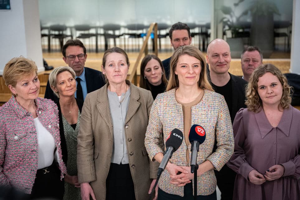 Doorstep i Beskæftigelsesministeriet den 30. marts 2023, da samtlige partier i Folketinget præsenterede den nye arbejdsmiljøaftale. | Foto: Emil Nicolai Helms/Ritzau Scanpix