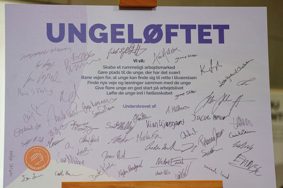 Under topmødet på Marienborg skrev organisationer under på ungeløftet. | Foto: Liselotte Sabroe/Ritzau Scanpix