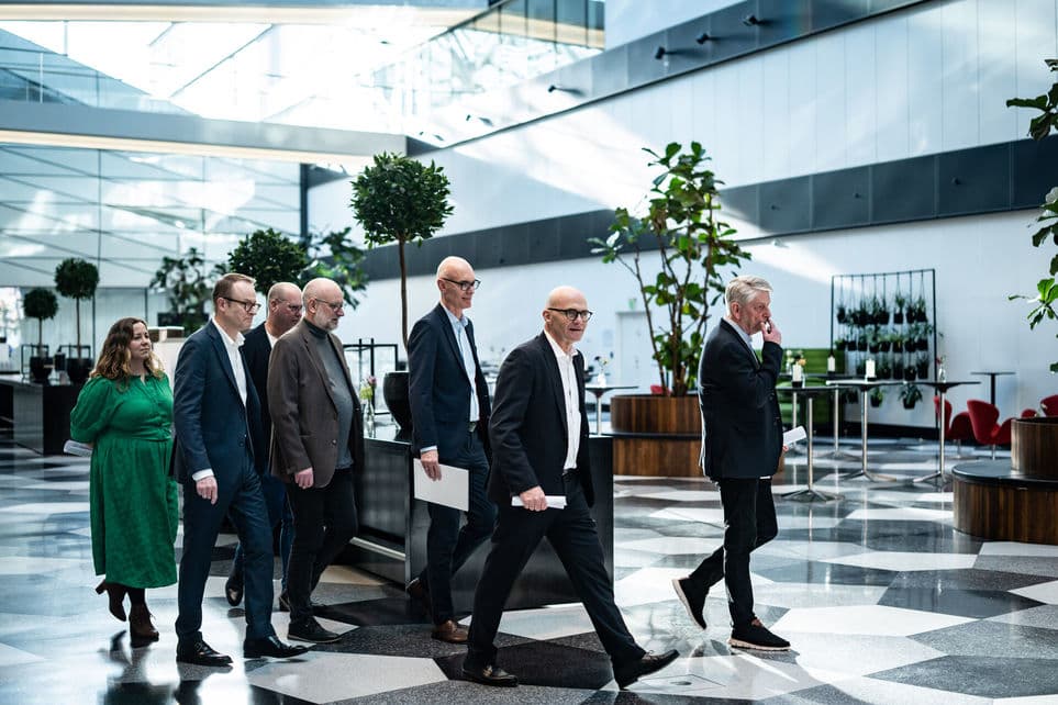 Vicedirektør i DI, Kim Graugaard og gruppeformand for 3F Transport, Jan Villadsen, præsenterer ny overenskomst på et pressemøde i Industriens Hus søndag den 23. februar. | Foto: Emil Nicolai Helms/Ritzau Scanpix