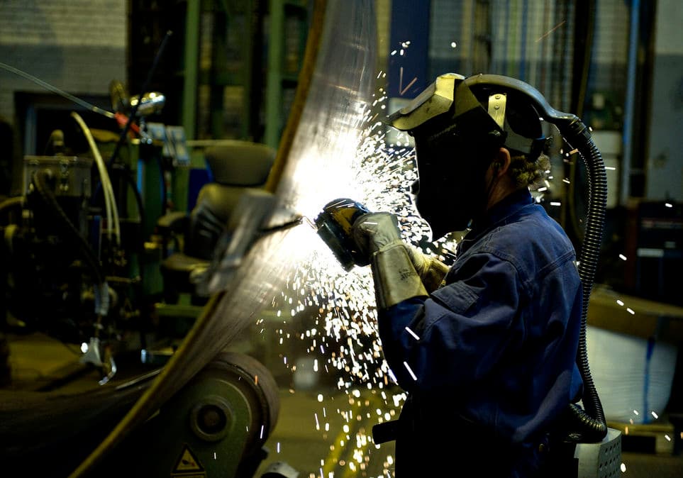 I slutningen af august nedlagde Vestas-ansatte arbejdet på en lang række fabrikker. Her svejses et vindmølletårn fra Vestas Towers (arkiv). | Foto: Henning Bagger/BAG/Ritzau Scanpix