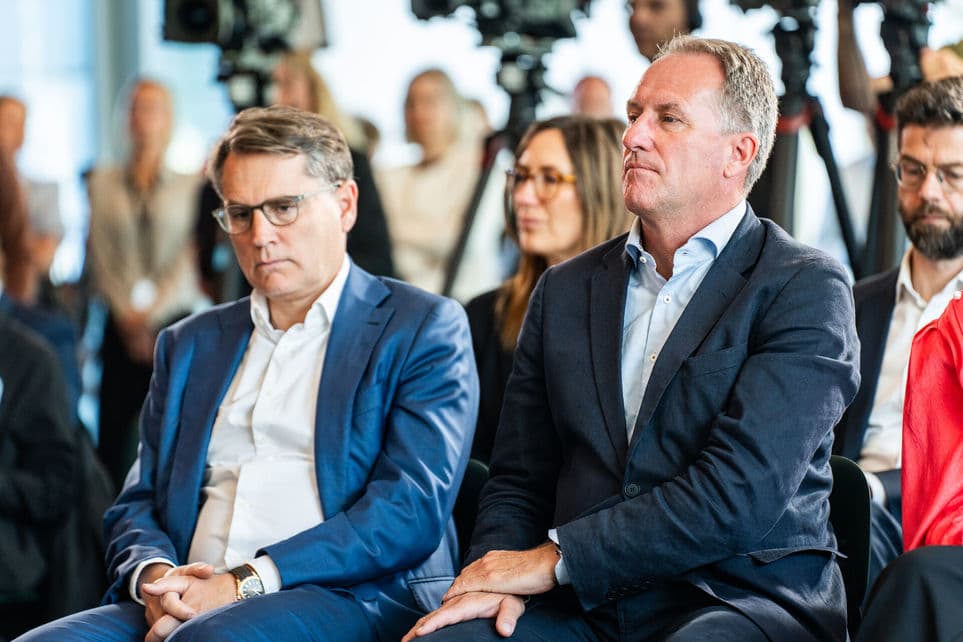 Administrerende direktør i Dansk Erhverv Brian Mikkelsen (tv.) og administrerende direktør i Dansk Industri Lars Sandahl Sørensen (th.) får efter en stille sommer nok at se til i efteråret. | Foto: Emil Nicolai Helms/Ritzau Scanpix