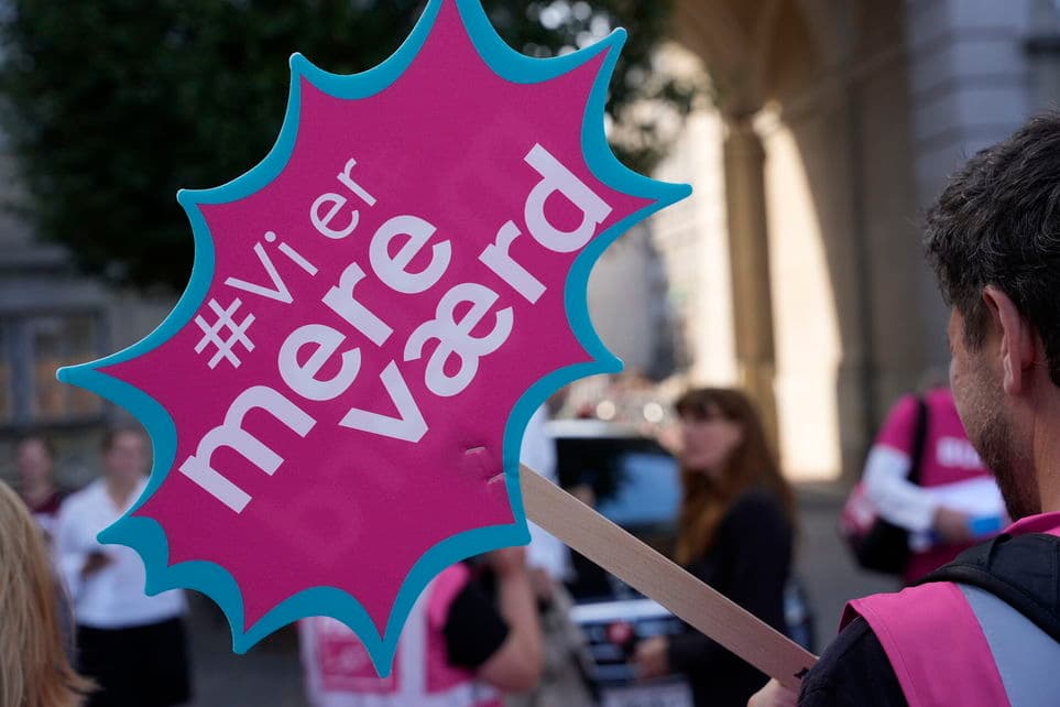 Medlemmer af BUPL og LFS demonstrerer for højere løn til pædagoger på Christiansborg Slotsplads onsdag den 27. september 2023. | Foto: Emil Helms/Ritzau Scanpix