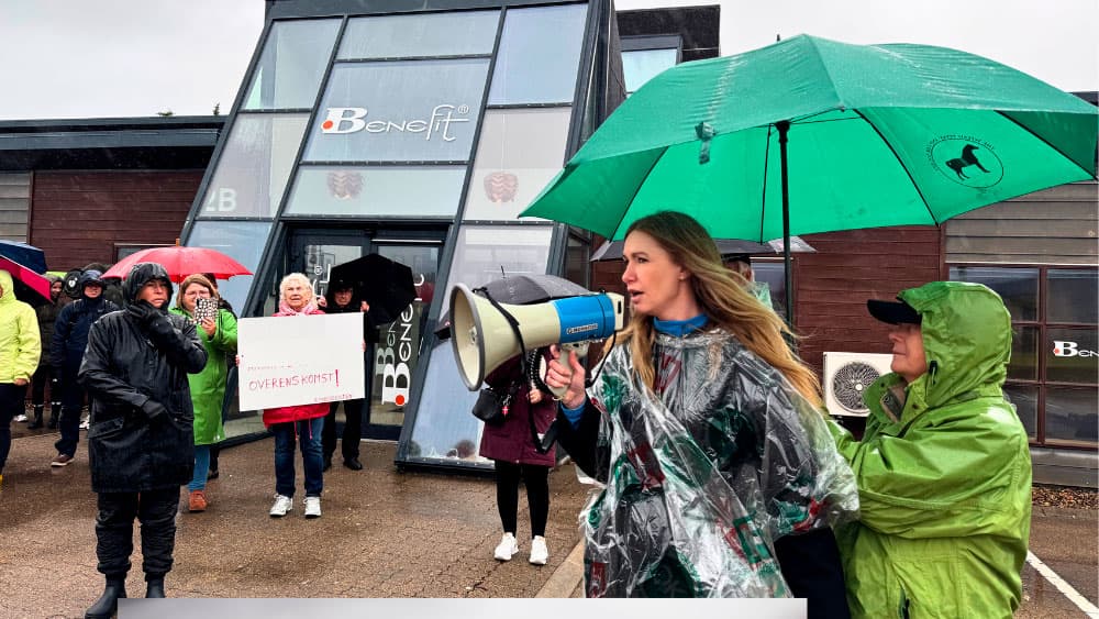 Formand for Fysiotereapeuternes Fagforening Signe Lærke Børsting ved demonstration foran Benefit Nord. | Foto: Fysiotereapeuternes Fagforening