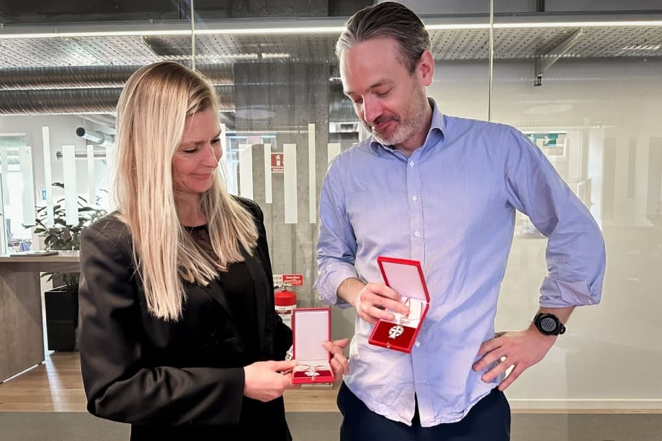 Dorthe Høst Sarup og Nicolai Ebsen modtager ridderkors af Dannebrogordenen. | Foto: Uddannelses- og Forskningsstyrelsen